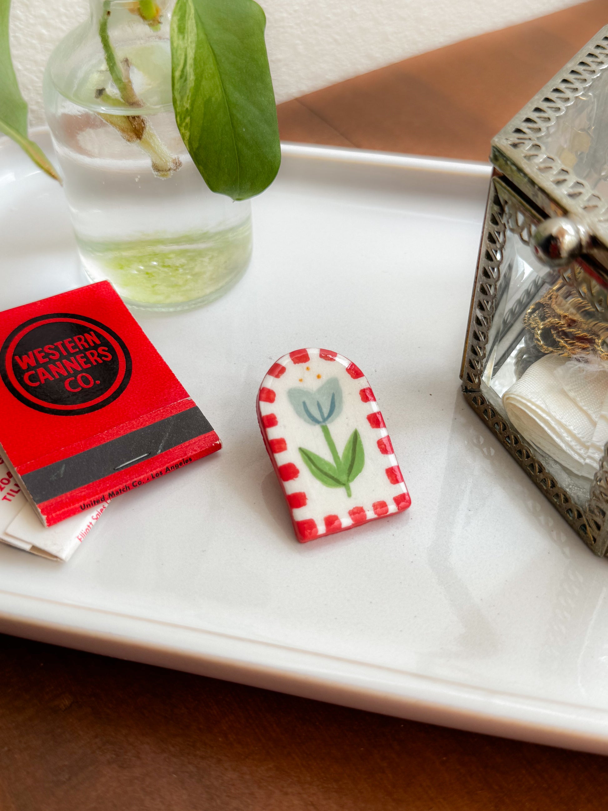 Clay Pin - Arched Blue Tulip
